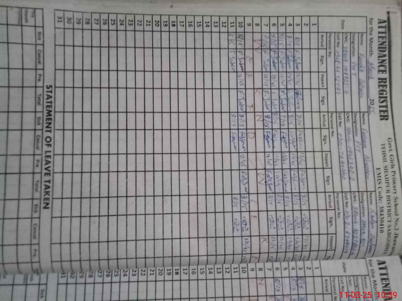 | Name: FA**** JA**** Designation: (School Headmaster's/Headmistress's) PST Phone/Cell Number: 03**** |