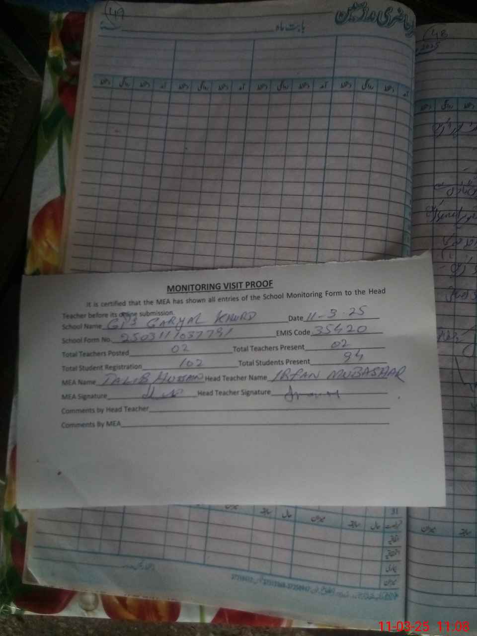 | EMIS Code: 35420283 | Name of School: GPS GHARIAL KHURD | |||
