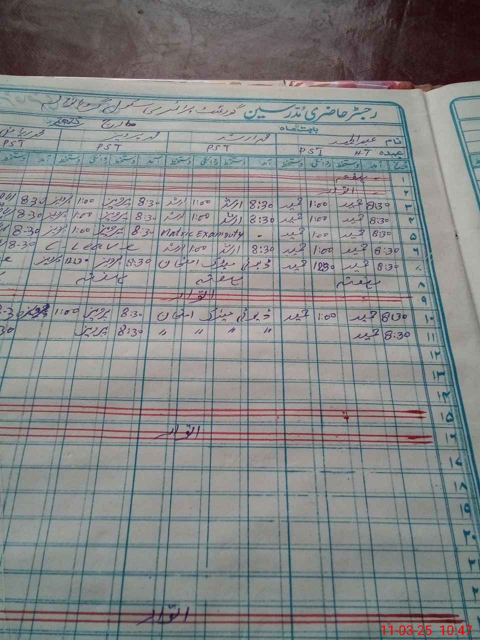 | 35**** | Mu**** Ar**** | PST | Regular | 0 | 0 | 0 | 0 | 0 | 0 | 0 | 0 | 0 | Exam Duty |