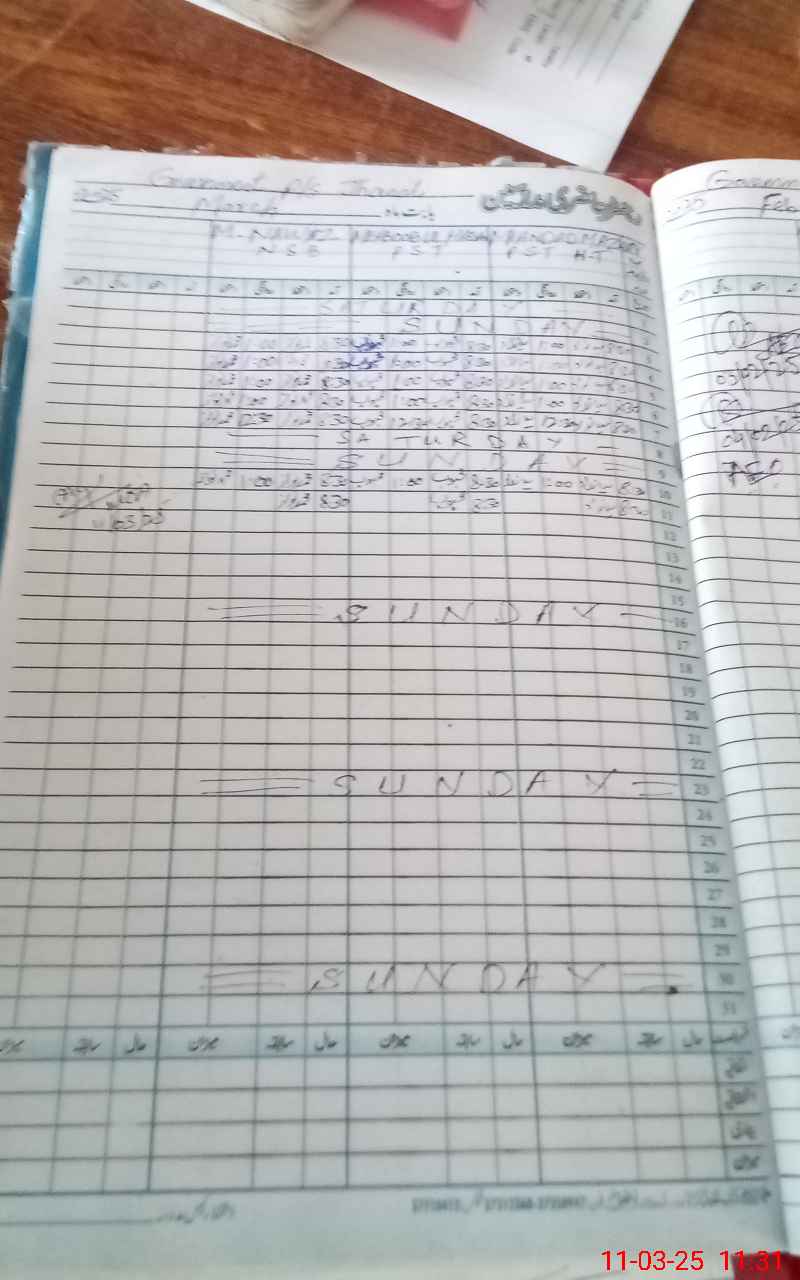 | CNIC | Full Name | Designation | R/C | Absence During Last Calender Month |