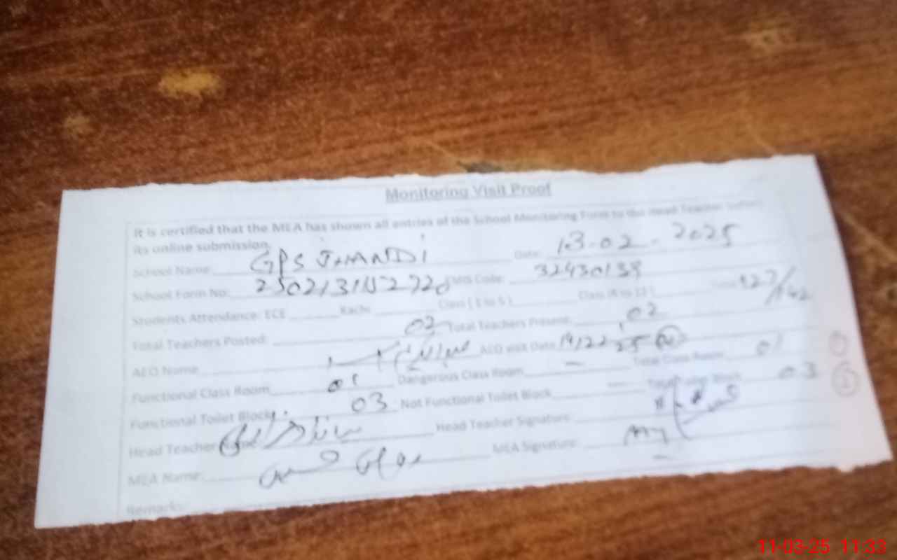 | EMIS Code: 32430139 | Name of School: GPS JHANDI | |||