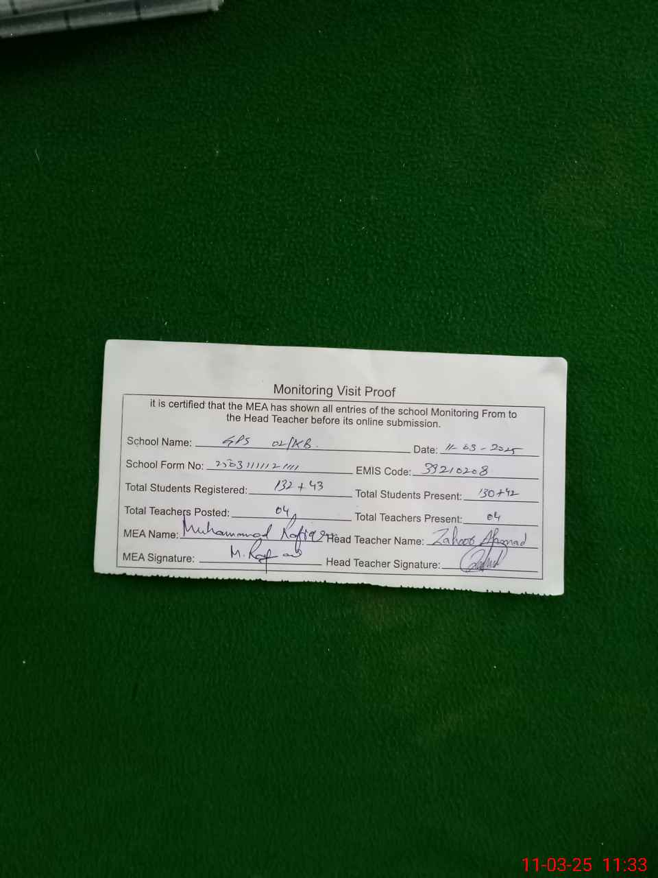 | Certified that this School was Inspected by the Undersigned MEA/DMO Today and the Information Stated Above is as Per Record. | |||||