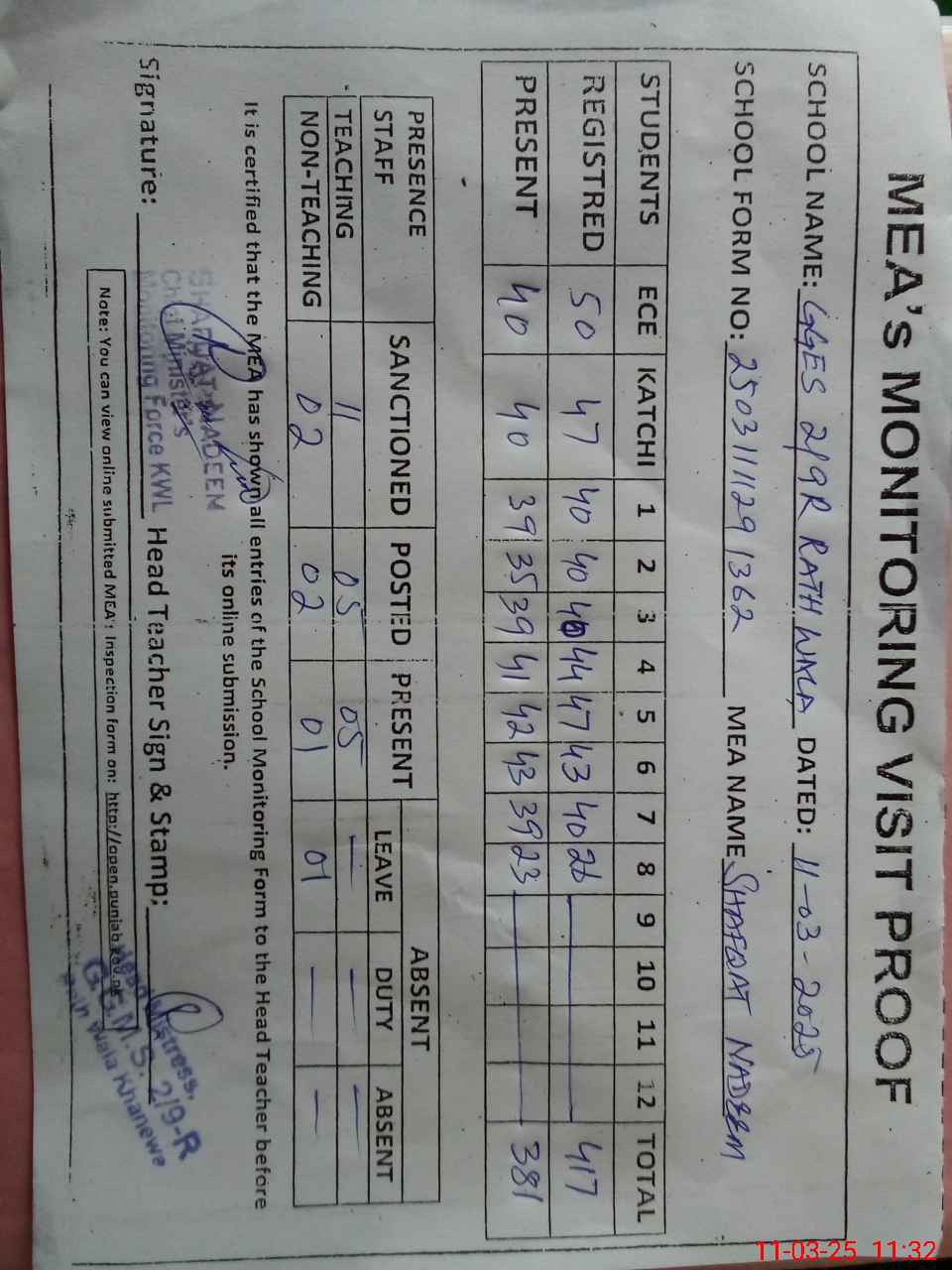 | EMIS Code: 36420112 | Name of School: GGES 2/9-R, RATH WALA, KACHA KHUH | |||