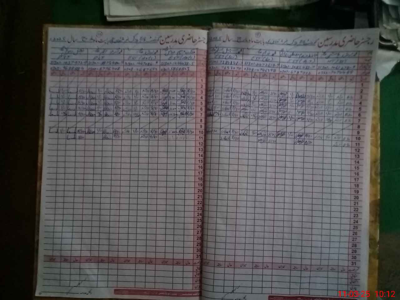 | CNIC | Full Name | Designation | R/C | Absence During Last Calender Month |