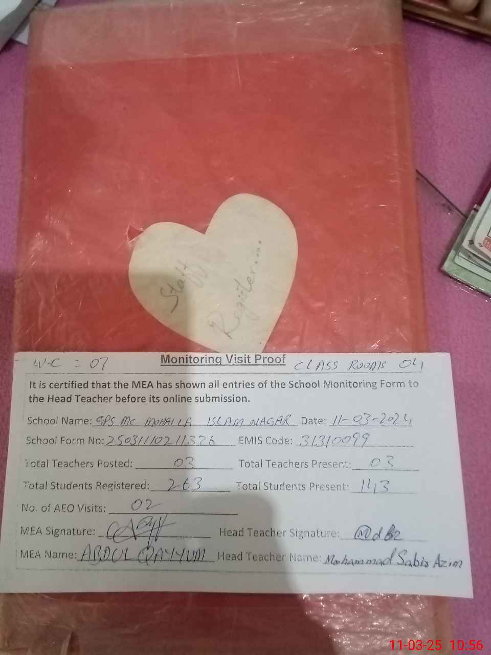 | EMIS Code: 31310099 | Name of School: GPS MC ARBIA MODDIB MOHALLA ISLAM NAGAR | |||