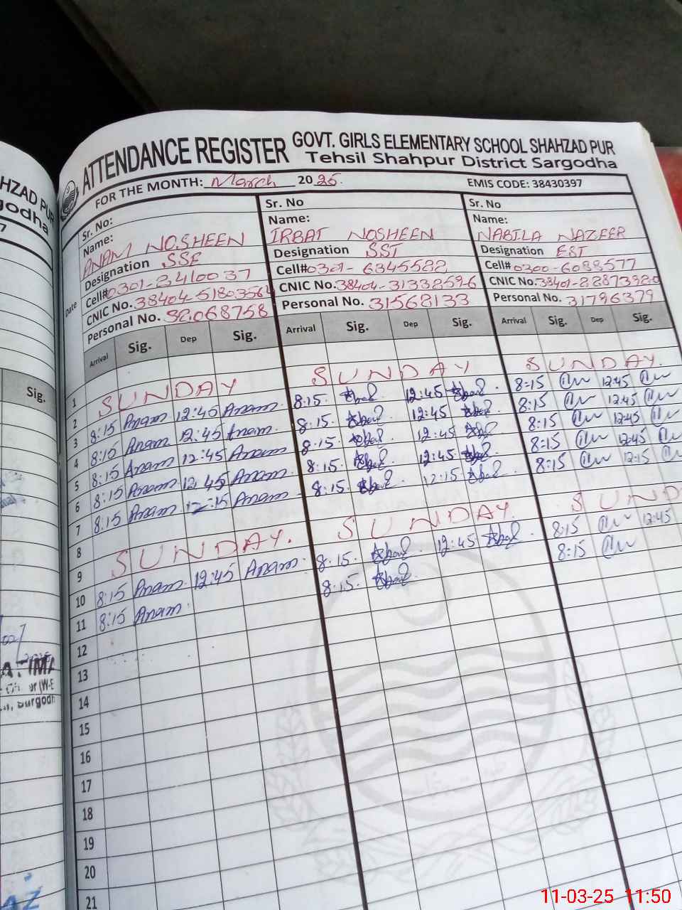 | Name: IR**** NO**** Designation: (School Headmaster's/Headmistress's) SST Phone/Cell Number: 03**** |