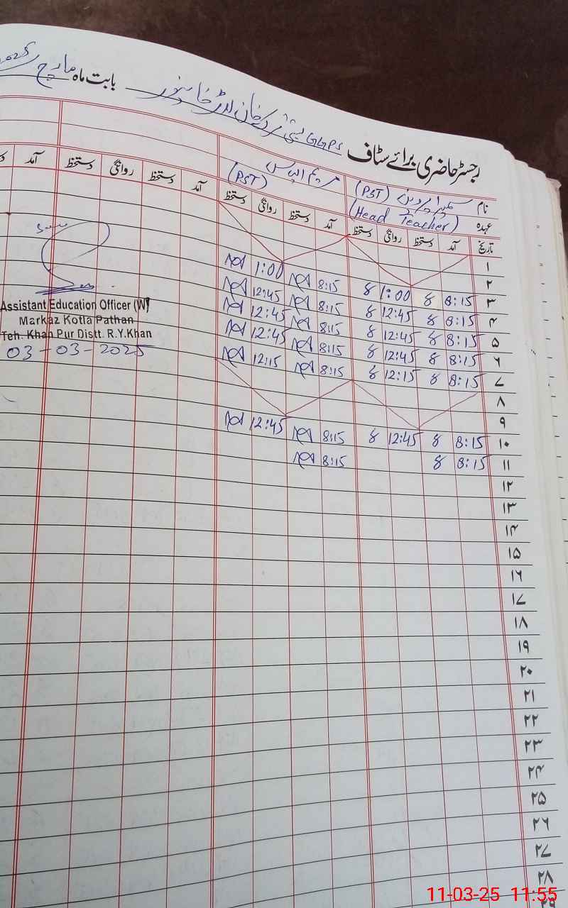 | District: RAHIMYAR KHAN | Tehsil: KHANPUR | Markaz: KOTLA PATHAN -FEMALE | Level: Primary | |