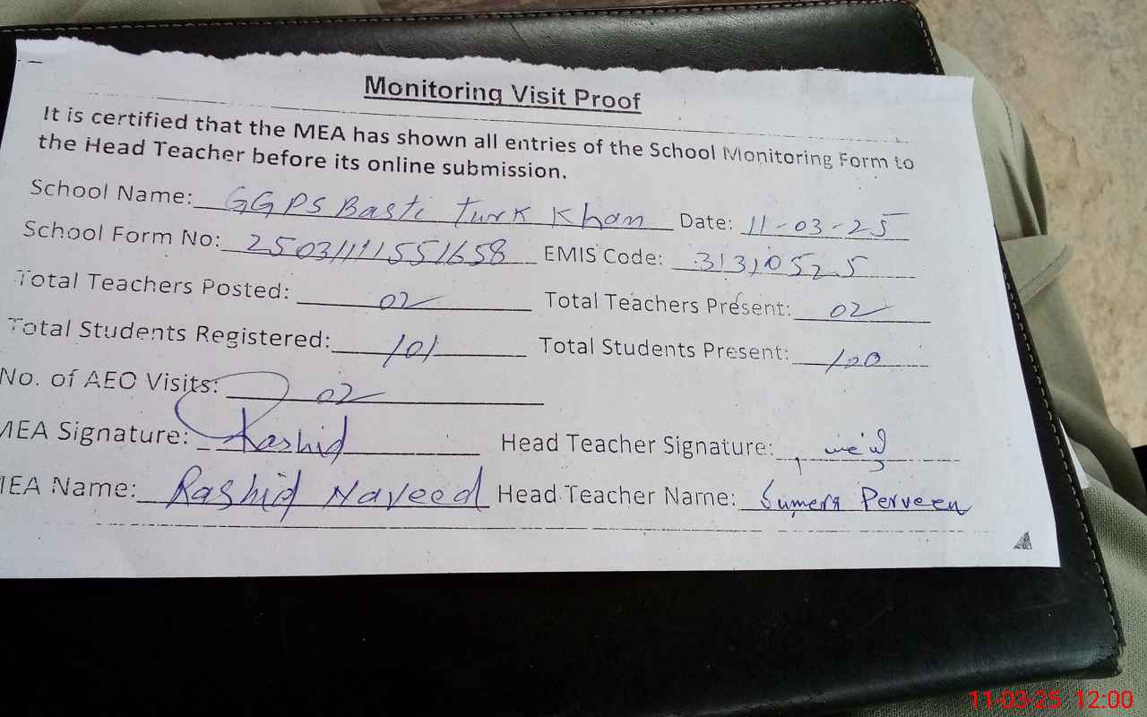 | EMIS Code: 31310525 | Name of School: GGPS BASTI TURK KHAN LAAR | |||