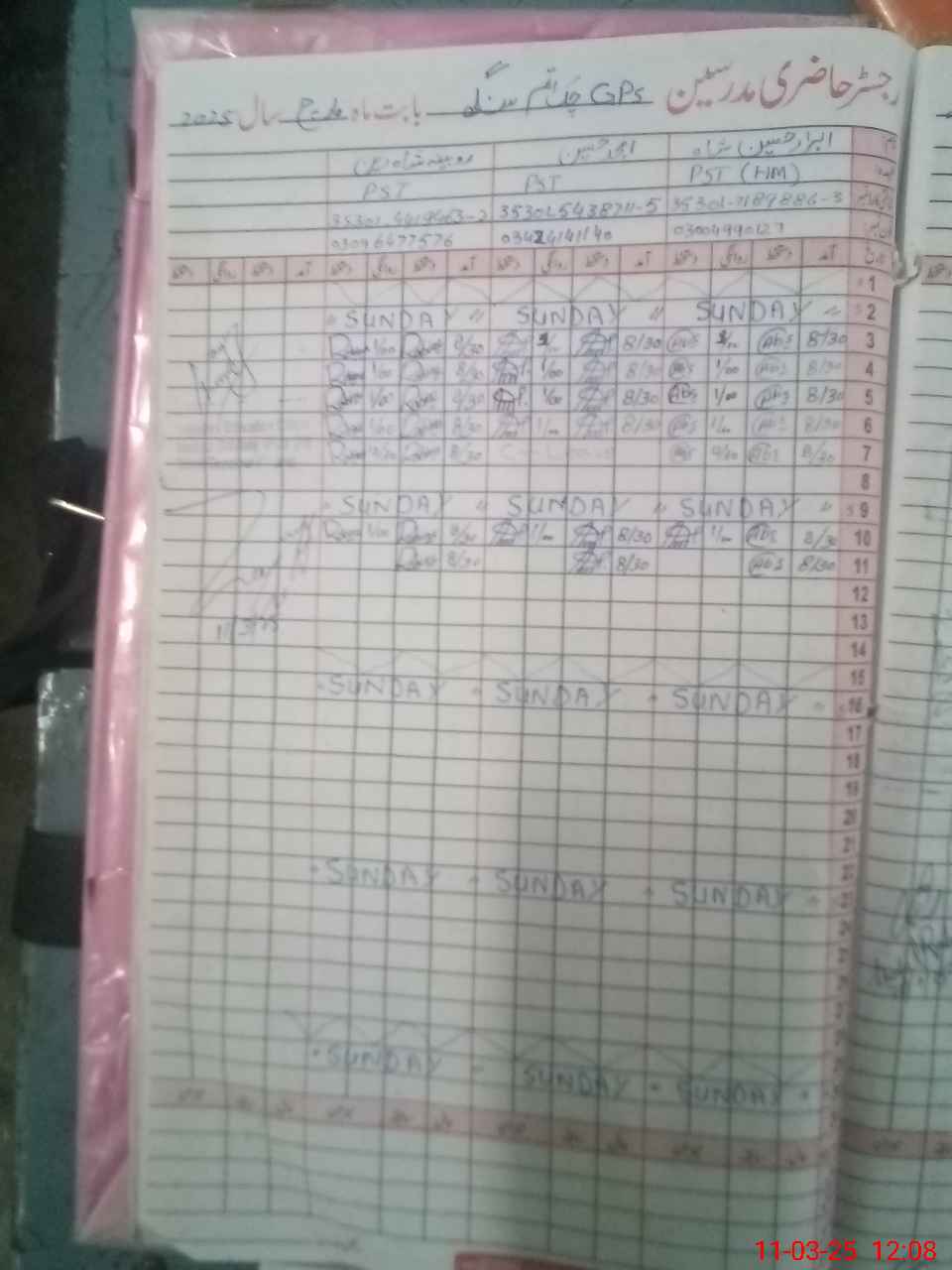 | Name: AB**** HU**** SH**** Designation: (School Headmaster's/Headmistress's) PST Phone/Cell Number: 03**** |