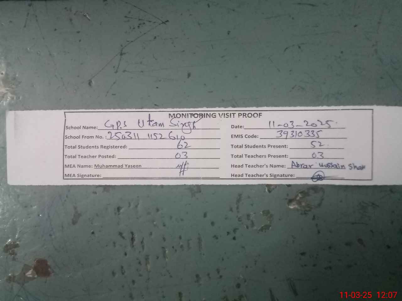 | EMIS Code: 39310335 | Name of School: GPS CHAK UTTAM SINGH | |||