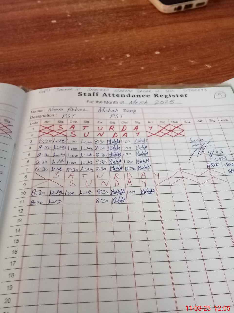 | Name of AEO: | AEO Contact No.: | MEA Phone#: 03**** 03**** | ||