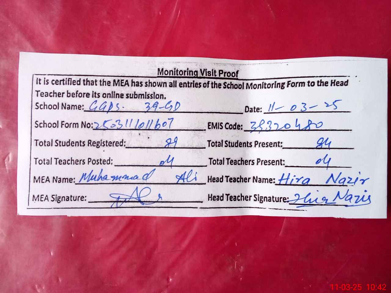 | EMIS Code: 39320480 | Name of School: GGPS 39/G.D | |||