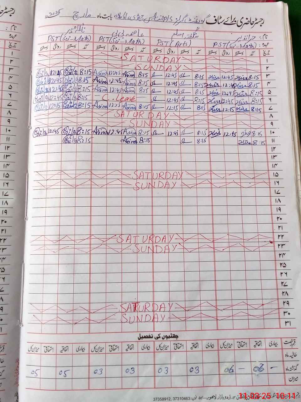 | Name: Hi**** Na**** Designation: (School Headmaster's/Headmistress's) PST Phone/Cell Number: 03**** |