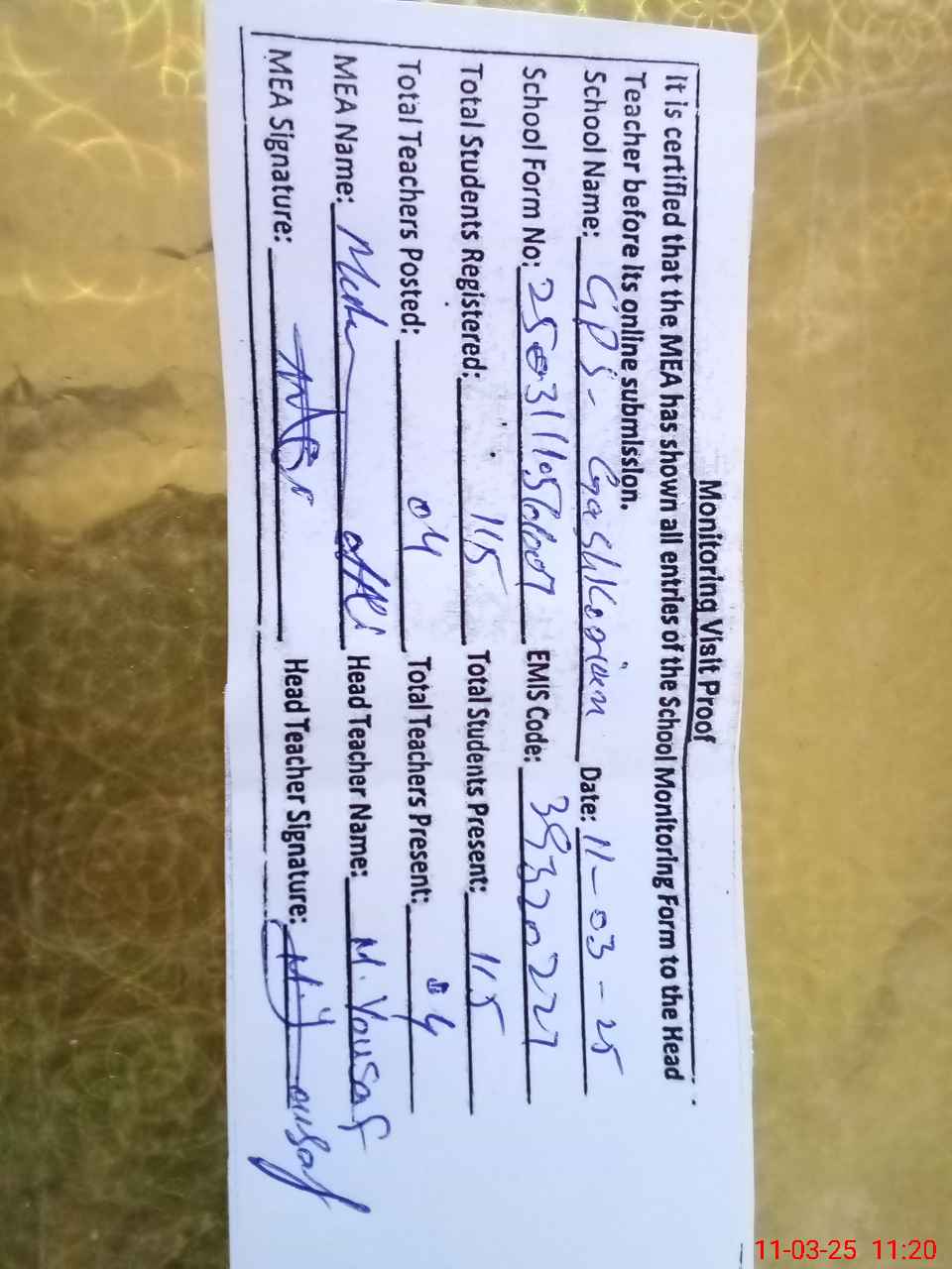 | EMIS Code: 39320221 | Name of School: GPS GASHKORIAN NO 1 | |||