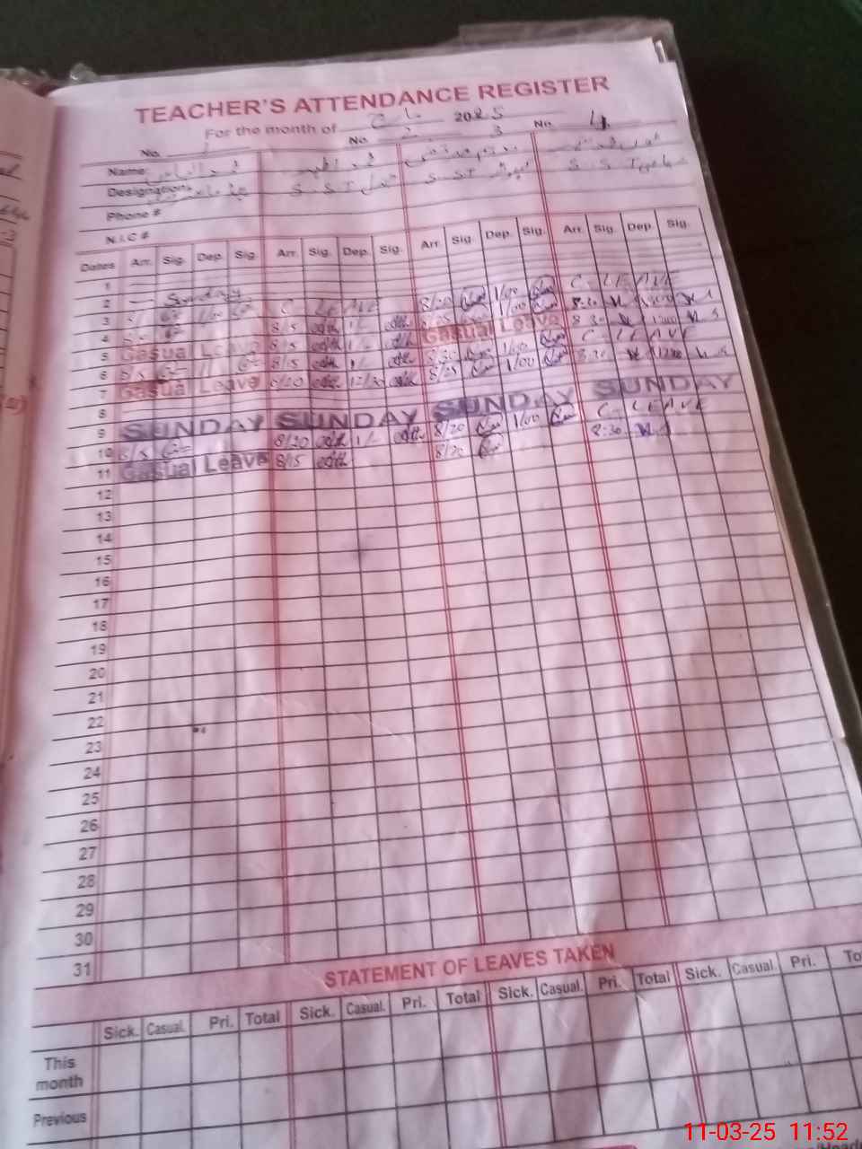 | 38**** | Mu**** Wa**** | 1 | 3 | 0 | 0 | 0 | 0 | 0 | 0 | 0 | 3 | Exam Duty | |