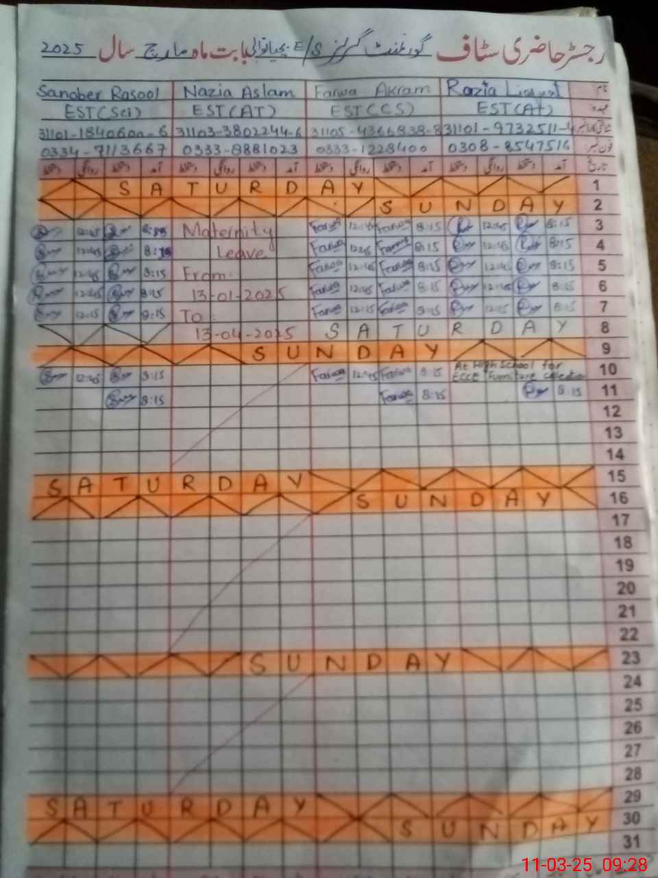 | 31**** | Ru**** Al**** | Regular | 28 | 0 | 0 | 28 | 0 | 0 | 0 | 0 | 0 | Maternity | |