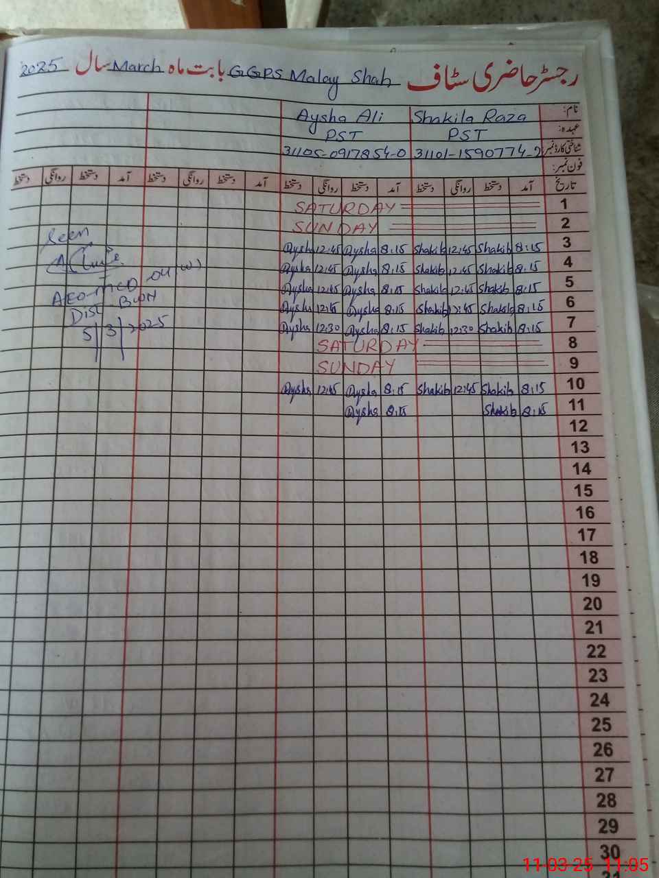 | Name: Ay**** Al**** Designation: (School Headmaster's/Headmistress's) PST Phone/Cell Number: 03**** |