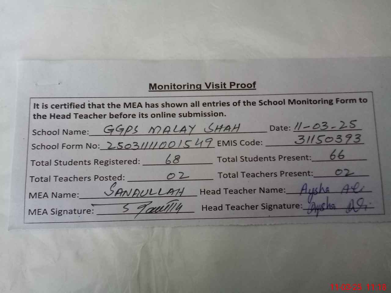 | EMIS Code: 31150393 | Name of School: GGPS MALAY SHAH | |||