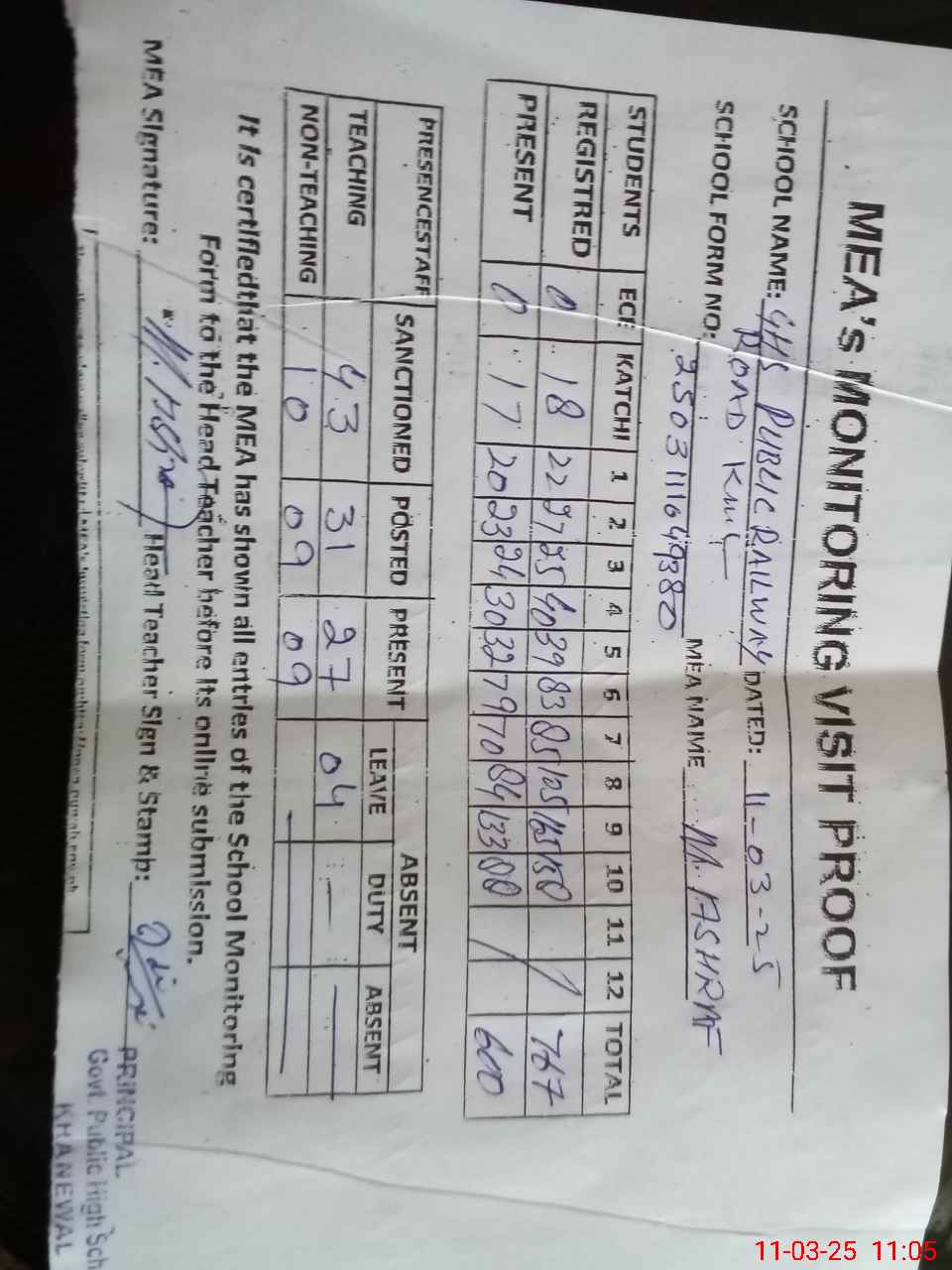 | EMIS Code: 36420004 | Name of School: GHS PUBLIC RAILWAY ROAD, KHANEWAL | |||