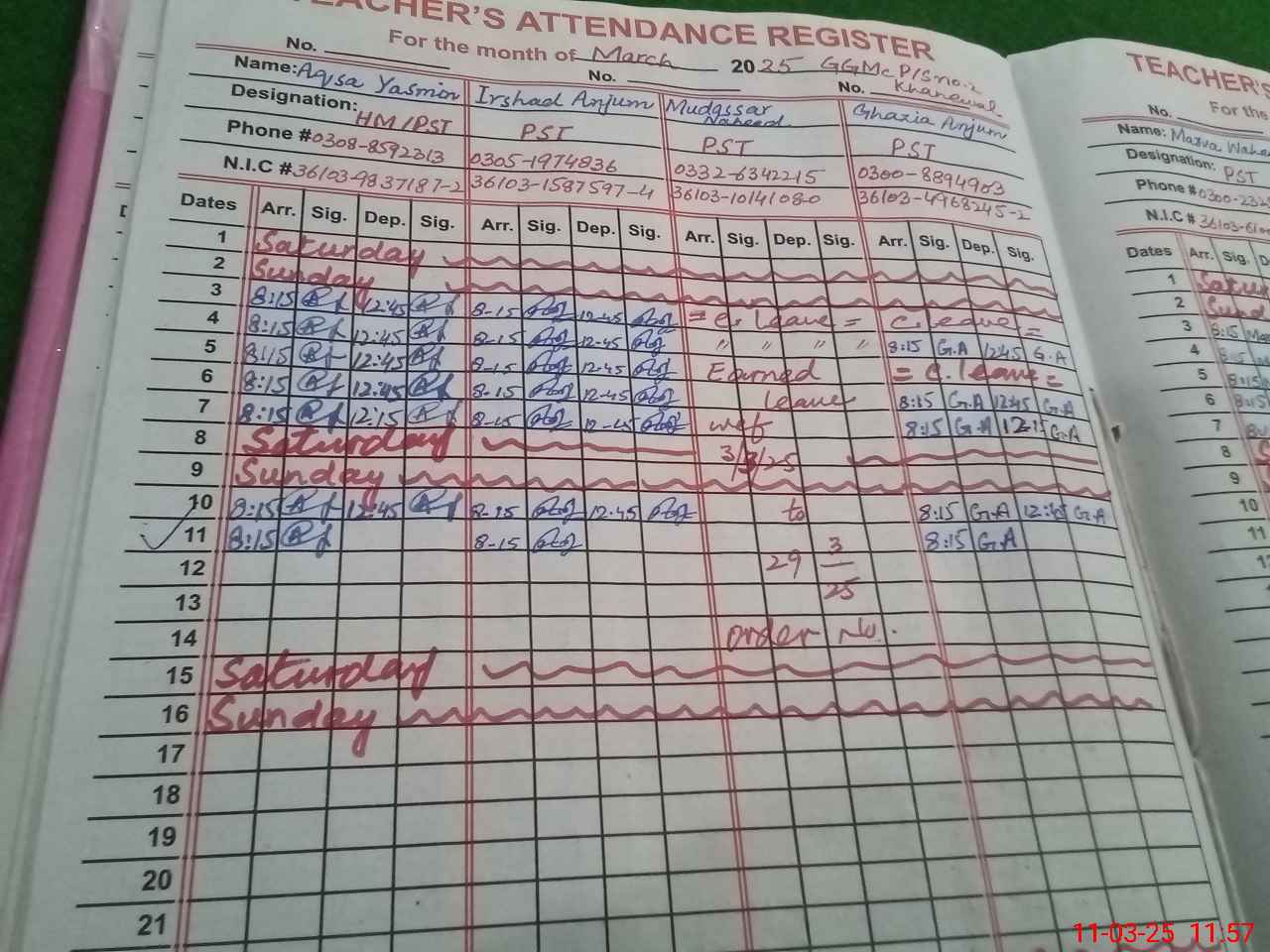 | Name: AQ**** YA**** Designation: (School Headmaster's/Headmistress's) PST Phone/Cell Number: 03**** |