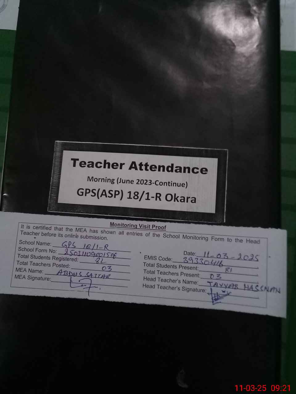 | EMIS Code: 39330416 | Name of School: GPS CHAK NO. 18/1-R | |||