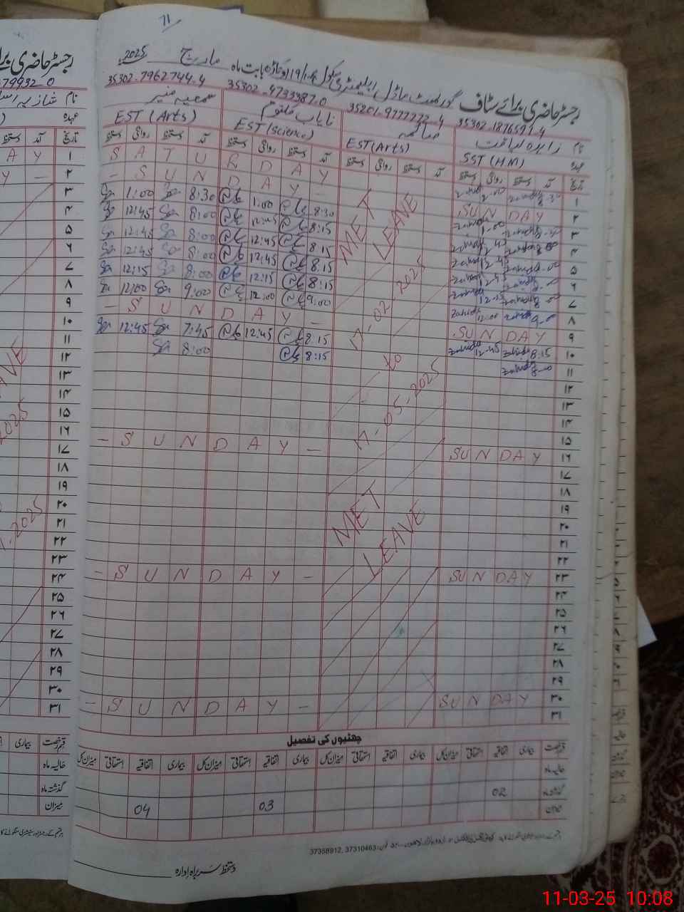 | Name: Za**** Li**** Designation: (School Headmaster's/Headmistress's) SST Phone/Cell Number: 03**** |