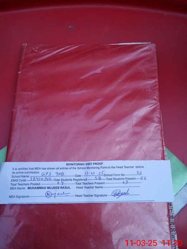 | EMIS Code: 38410142 | Name of School: GPS CHAK NO.9 NB | |||