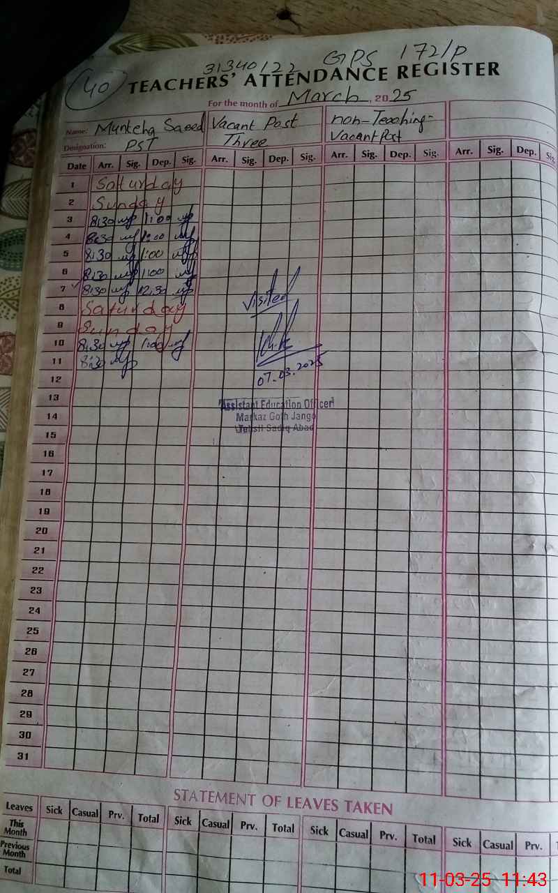 | Name: Mu**** Sa**** Designation: (School Headmaster's/Headmistress's) PST Phone/Cell Number: 03**** |