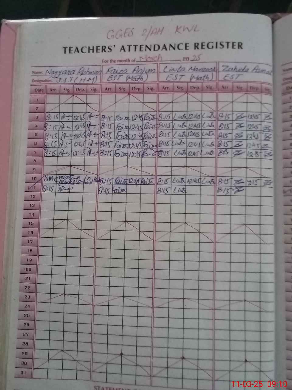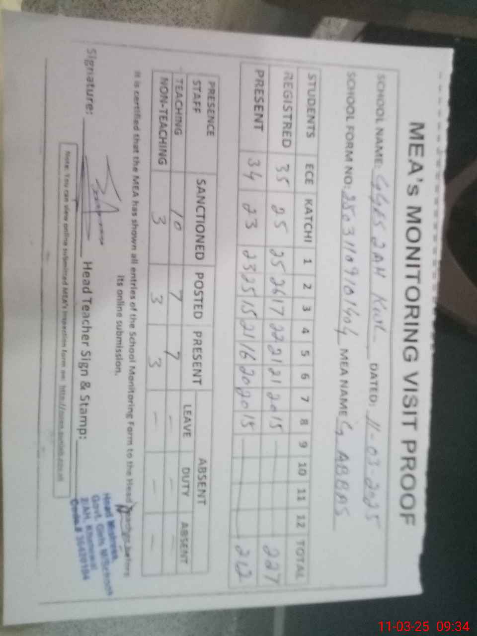 | Attendance Register | Head Teacher | MEA with School | Visit Proof |