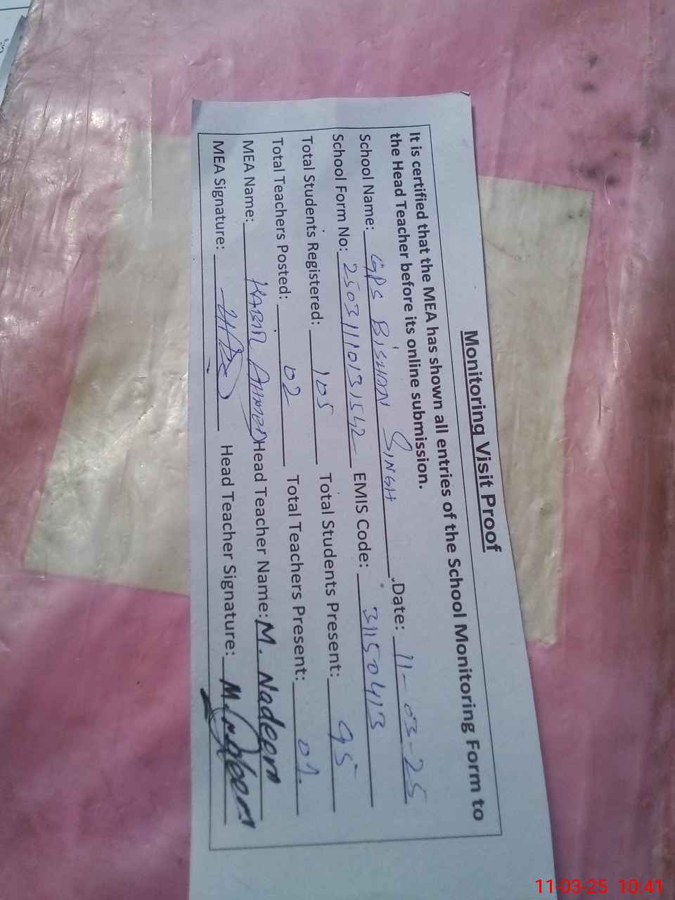 | EMIS Code: 31150413 | Name of School: GPS BISHAN SINGH | |||
