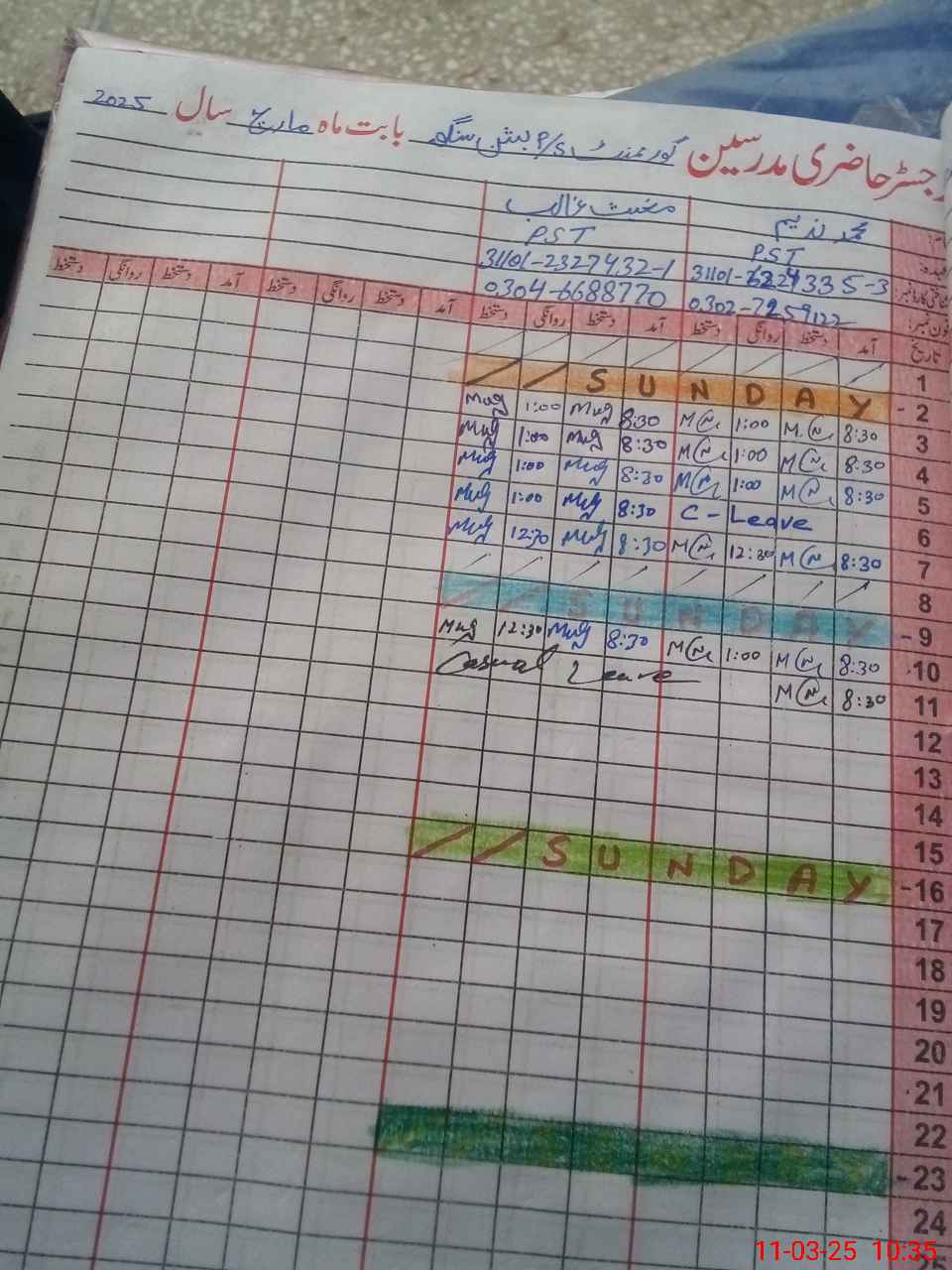 | 31**** | Mu**** Gh**** | 2 | 2 | 0 | 0 | 0 | 0 | 0 | 0 | 0 | 0 | 0 | Absent (Un-Authorized) |