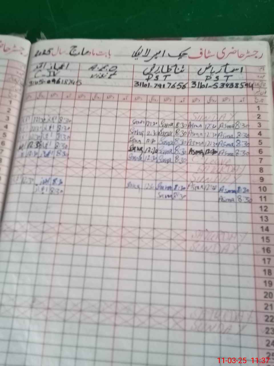 | Name: As**** Ri**** Designation: (School Headmaster's/Headmistress's) PST Phone/Cell Number: 03**** |