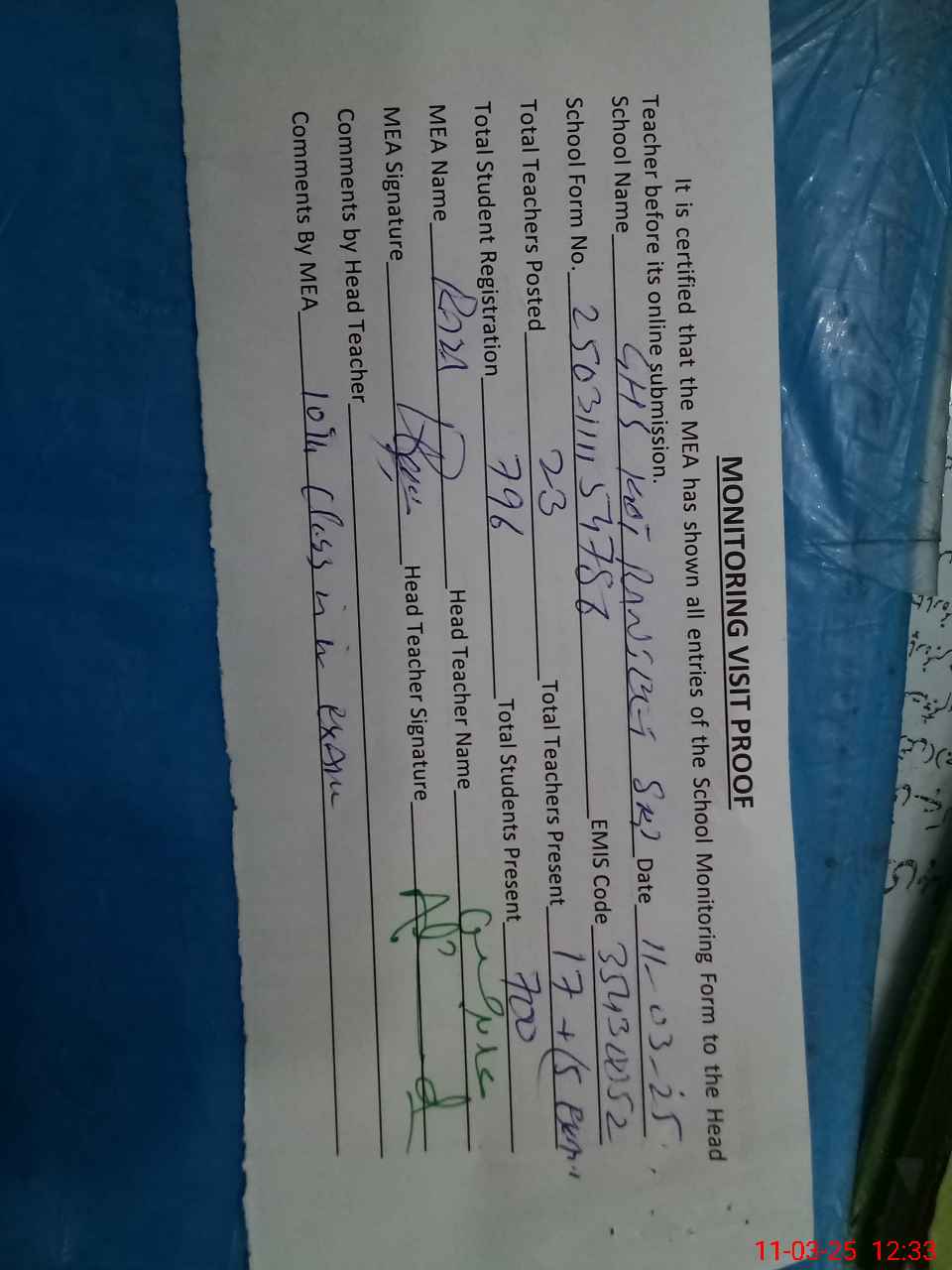 | EMIS Code: 35430052 | Name of School: GHS KOT RANJEET (SKP) | |||