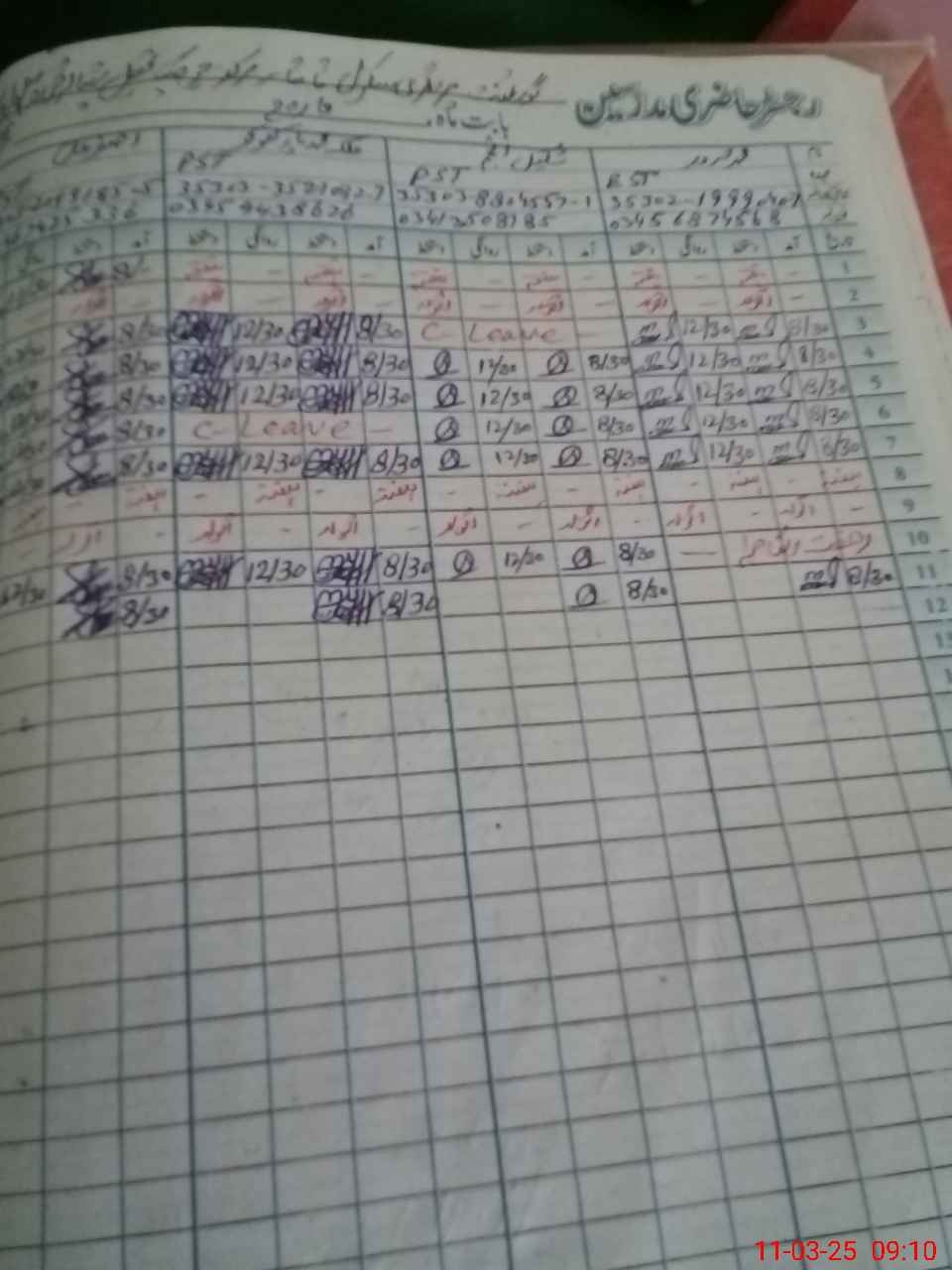 | CNIC | Full Name | Designation | R/C | Absence During Last Calender Month |