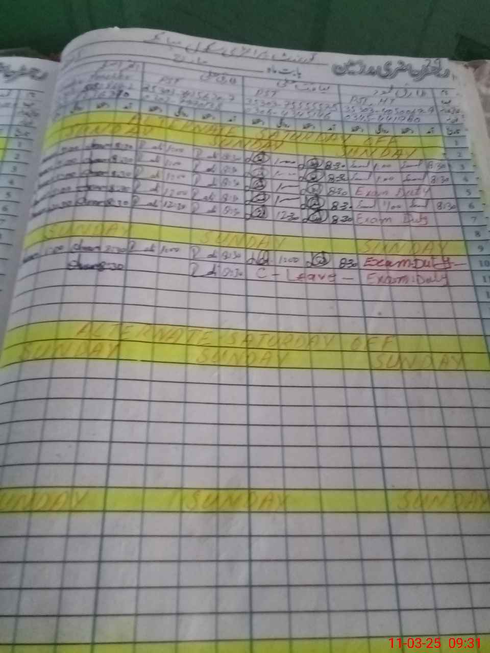 | Leave | Duty | Absent | Maternity | Medical | Ex- Pak |