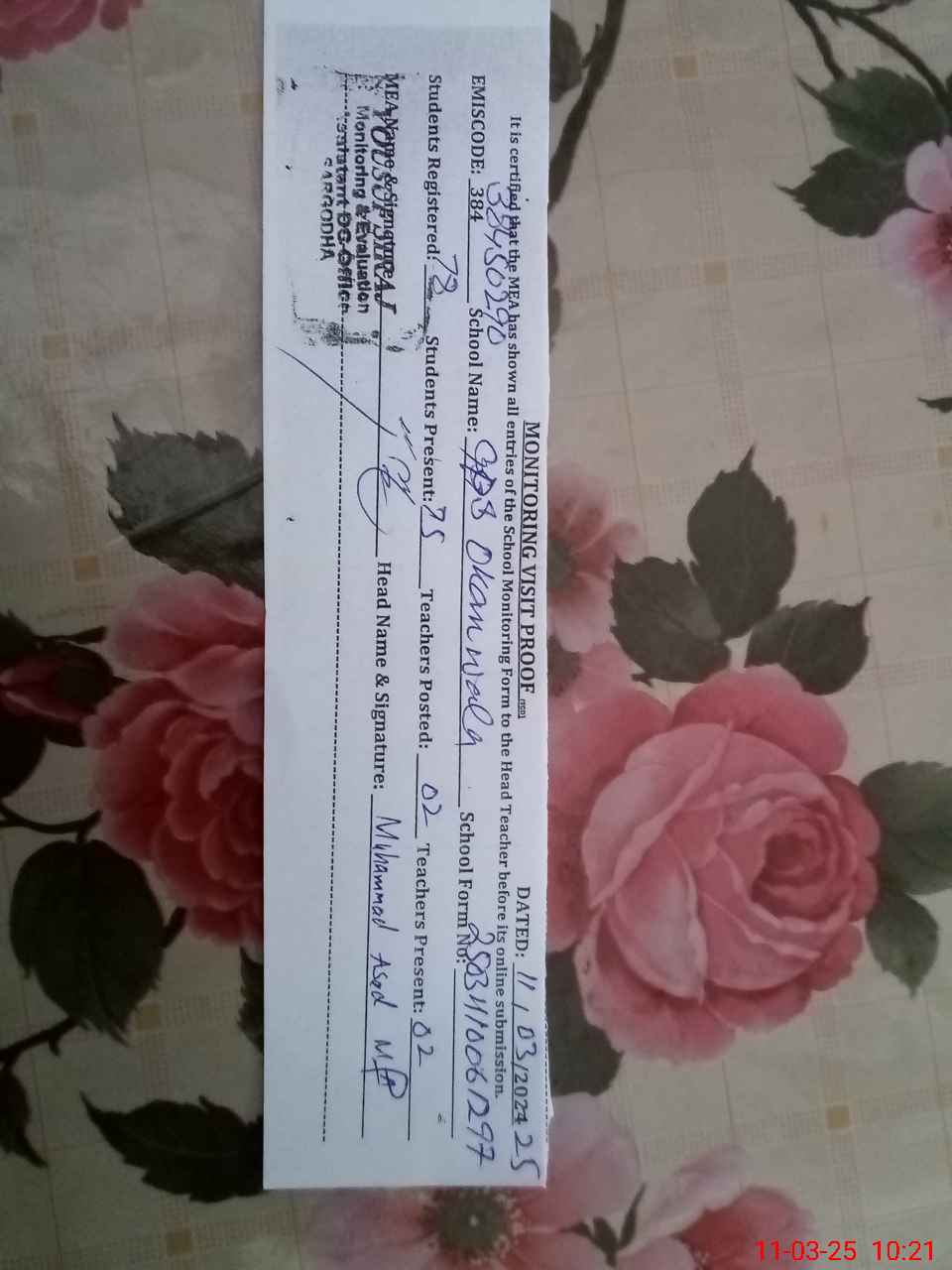 | EMIS Code: 38450290 | Name of School: GPS OKAN WALA | |||