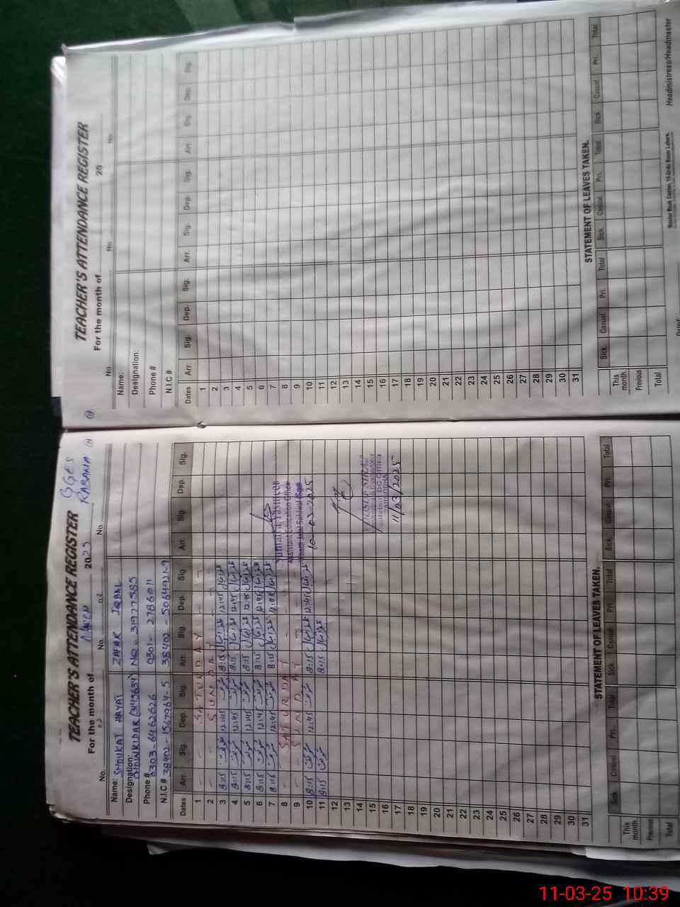 | Name: SH**** PA**** Designation: (School Headmaster's/Headmistress's) EST SCINECE MATH Phone/Cell Number: 03**** |