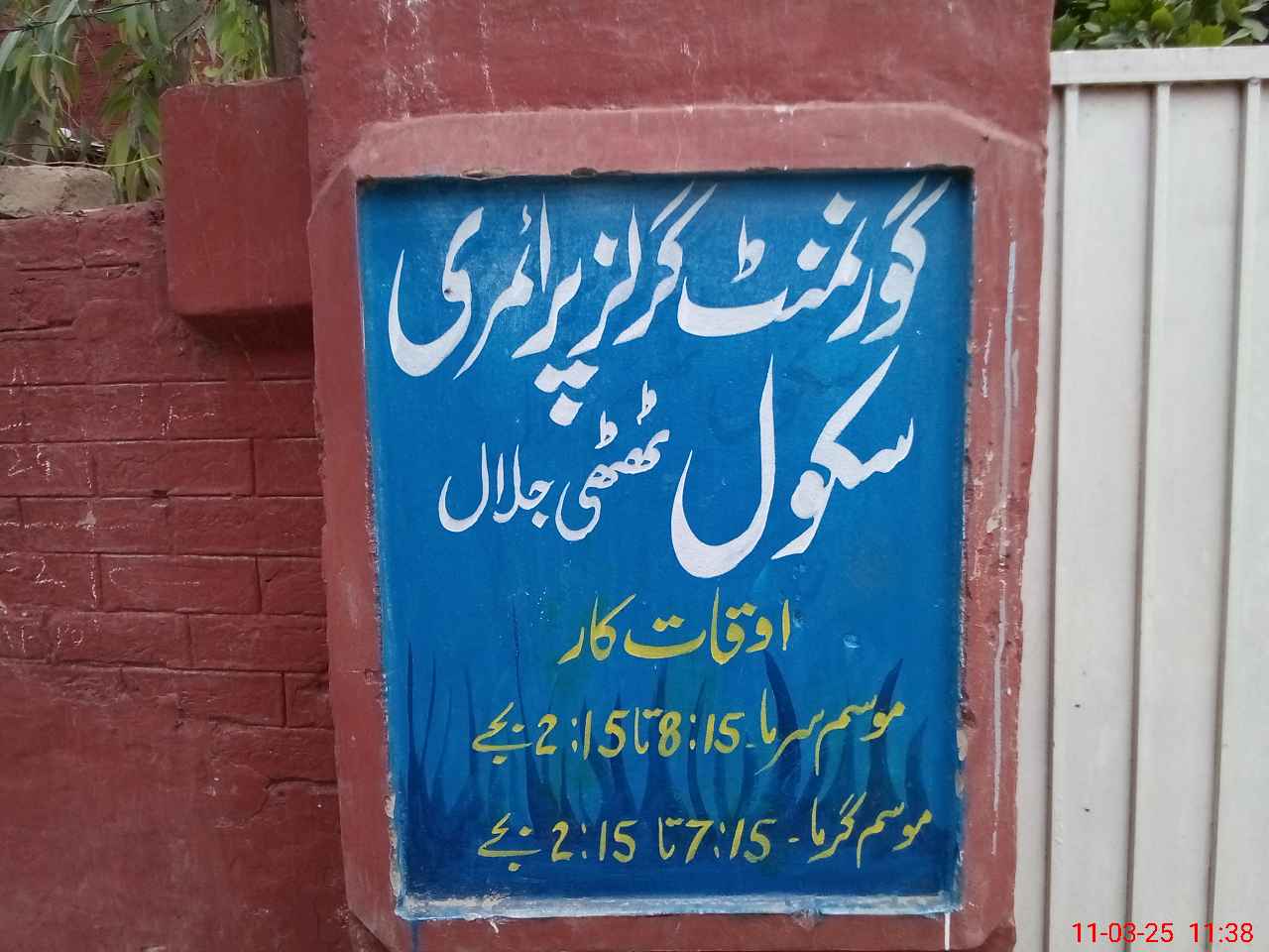 | District: SARGODHA | Tehsil: SAHIWAL | Markaz: THATTI JALAL - FEMALE | Level: Primary | |