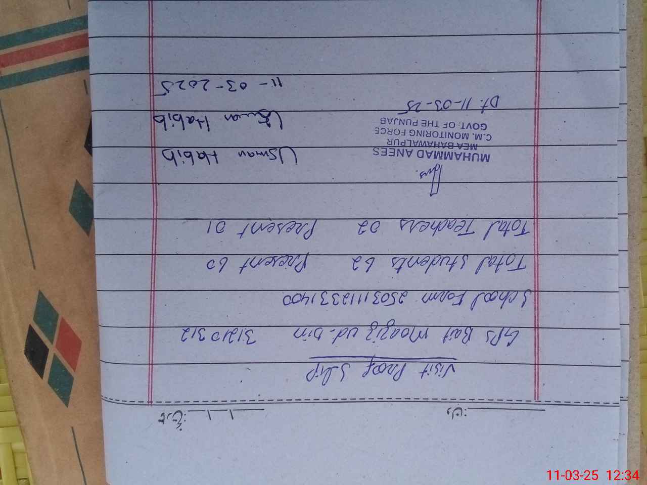 | EMIS Code: 31210312 | Name of School: GPS BAIT MOAZIZ-UD-DIN | |||