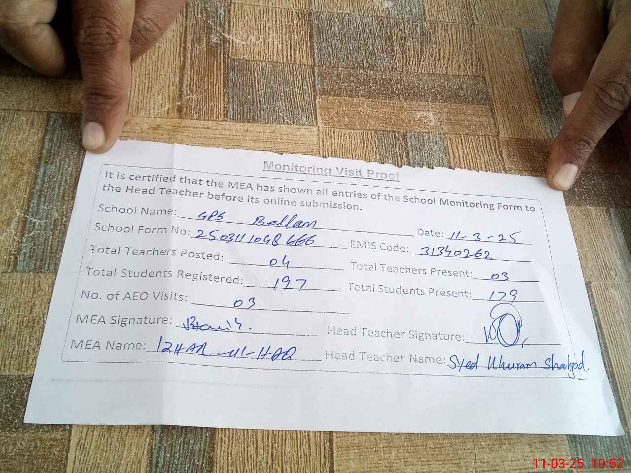 | Monitoring Date: 11-03-2025 | Start Time: 11-03-2025 10:28 AM | End Time: 11-03-2025 10:52 AM | Name of MEA: Mu**** Iz**** UlHa**** | |
