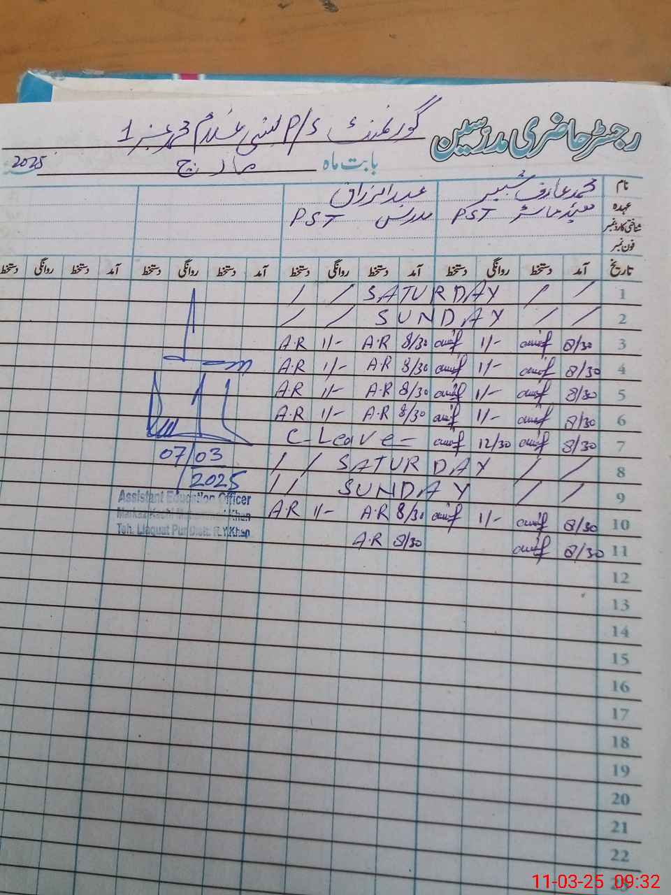 | Name: M.AR**** SH**** Designation: (School Headmaster's/Headmistress's) PST/PTC/JV Phone/Cell Number: 03**** |