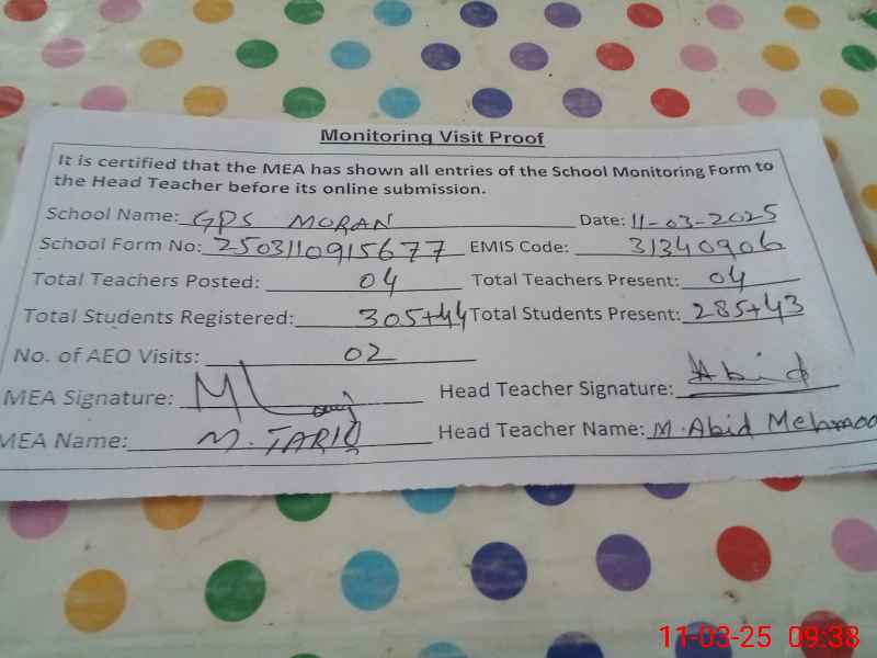 | EMIS Code: 31340906 | Name of School: GPS MORAN | |||