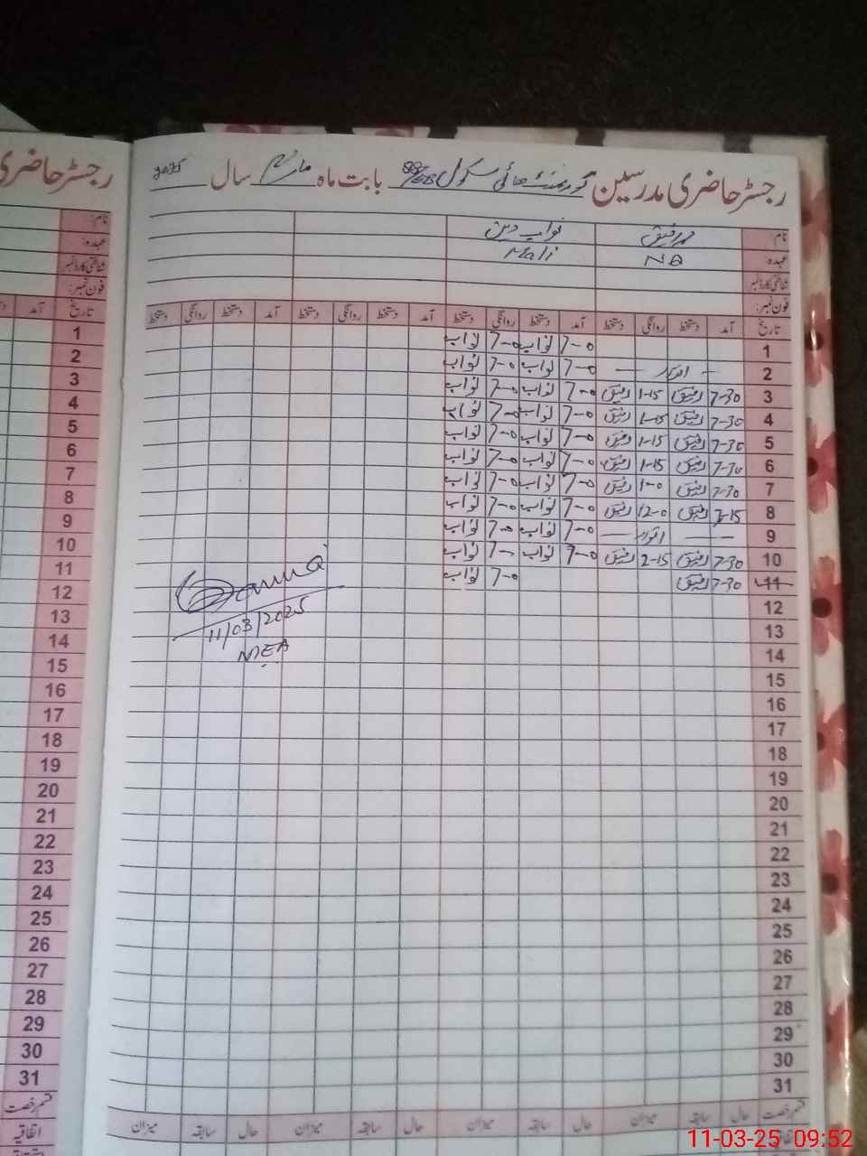 | Attendance Register | Head Teacher | MEA with School | Visit Proof |