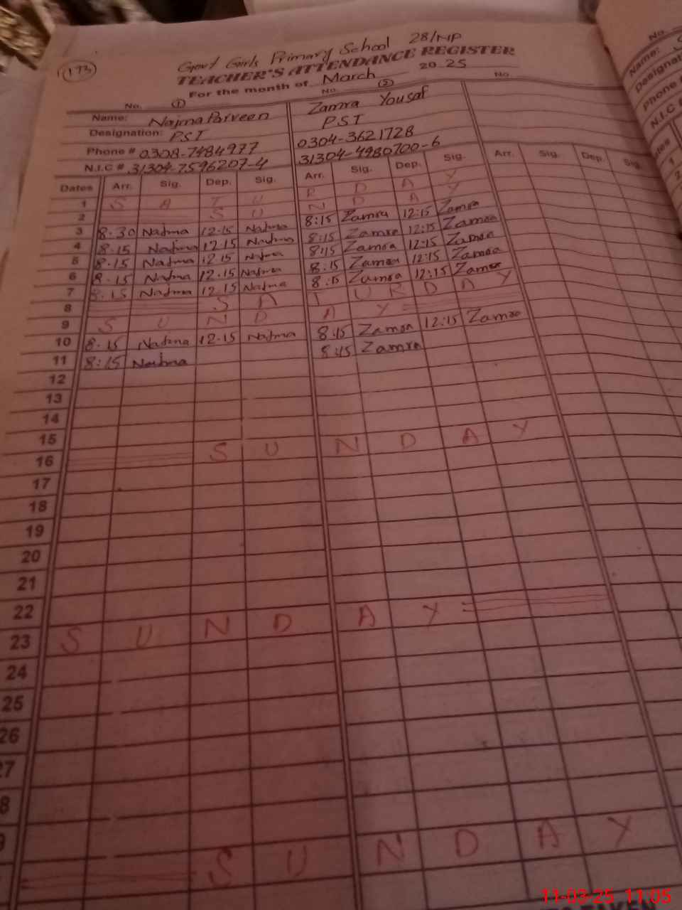 | 31**** | Ra**** Ay**** | 1 | 3 | 0 | 0 | 0 | 0 | 0 | 0 | 0 | 3 | Exam Duty | |