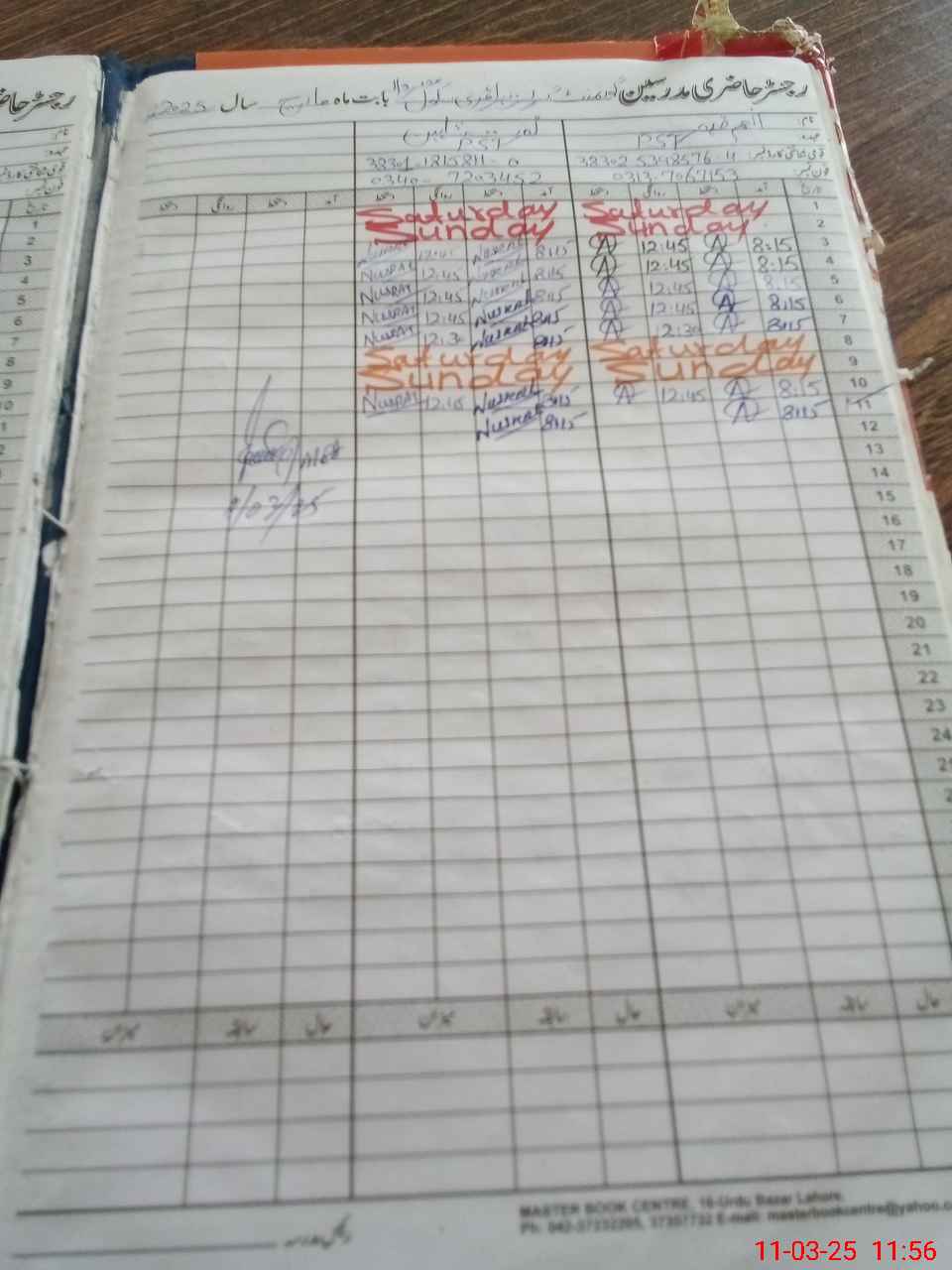 | CNIC | Full Name | Designation | R/C | Absence During Last Calender Month |