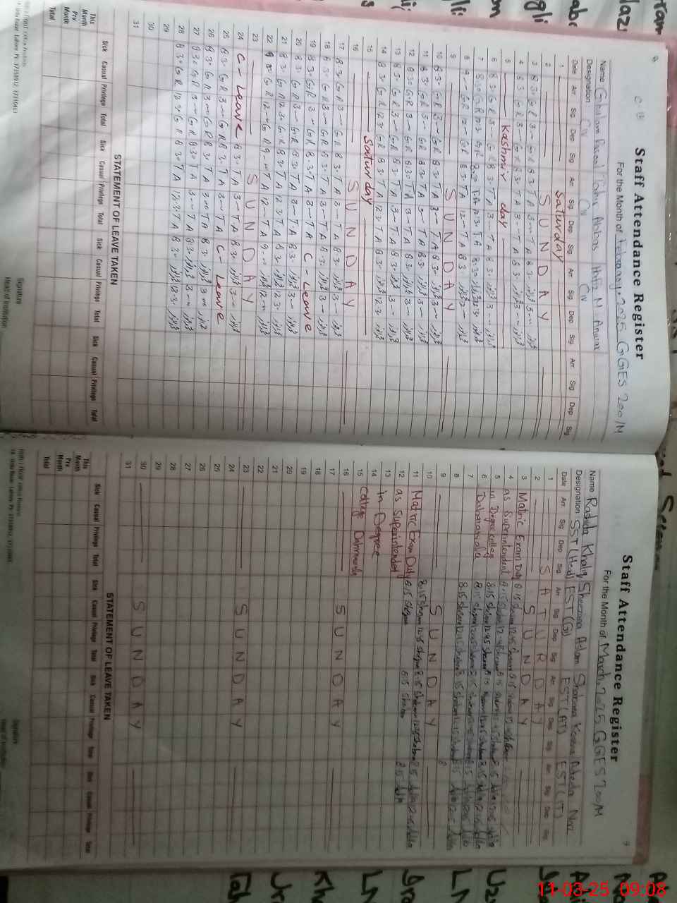 | 31**** | Ra**** Kh**** | Regular | 1 | 1 | 0 | 0 | 0 | 0 | 0 | 0 | 1 | Exam Duty | |