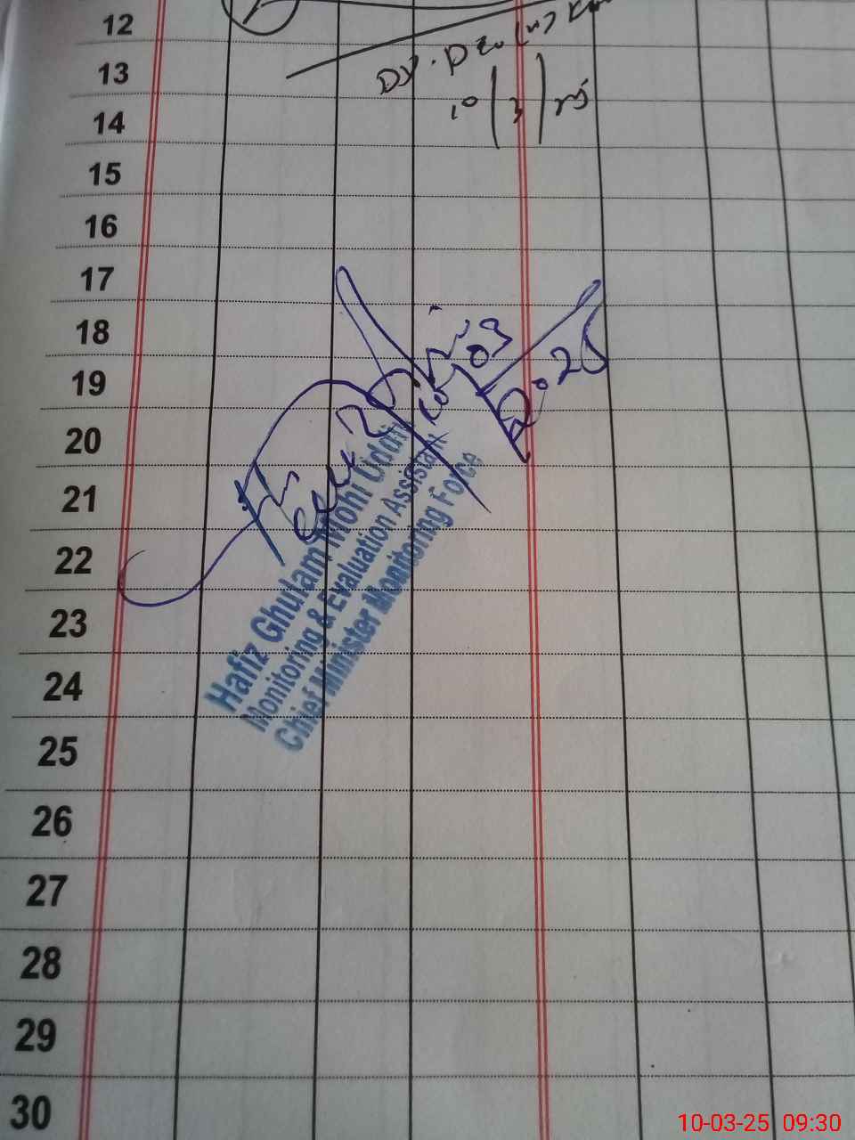 | CNIC | Full Name | Designation | R/C | Absence during last cal. month |