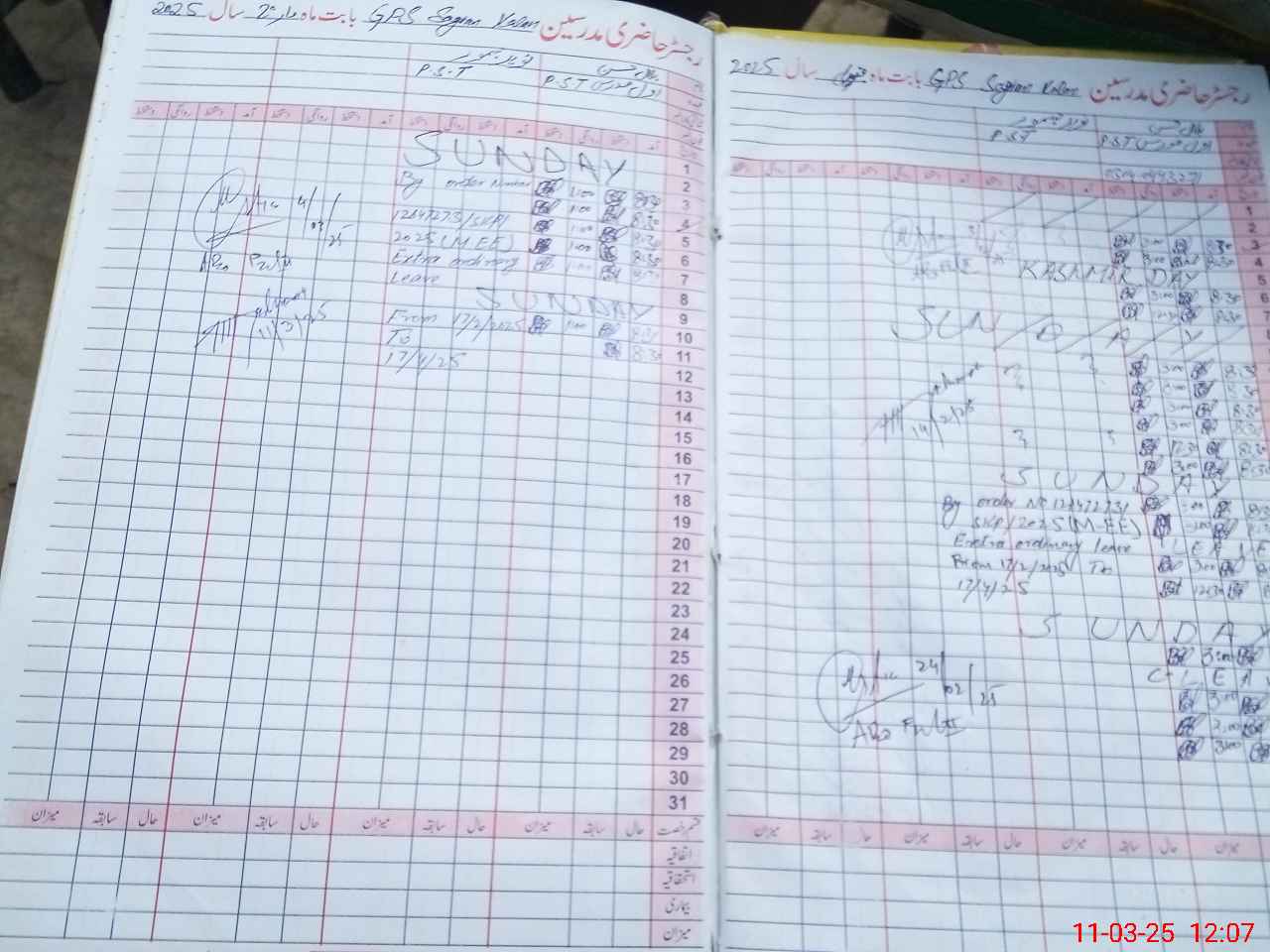 | CNIC | Full Name | Designation | R/C | Absence During Last Calender Month |