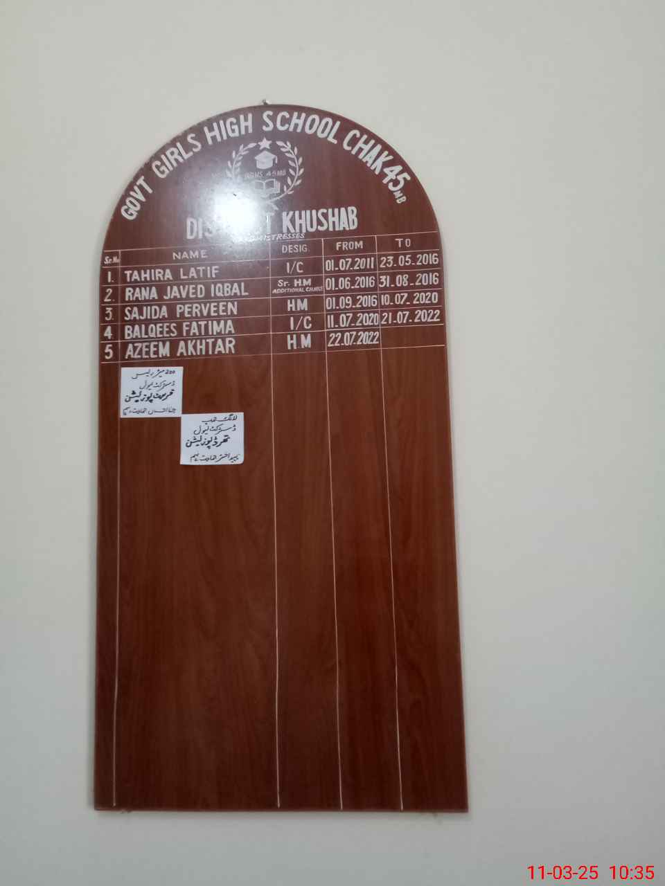 | EMIS Code: 38210857 | Name of School: GGHS CHAK NO 45 MB | |||