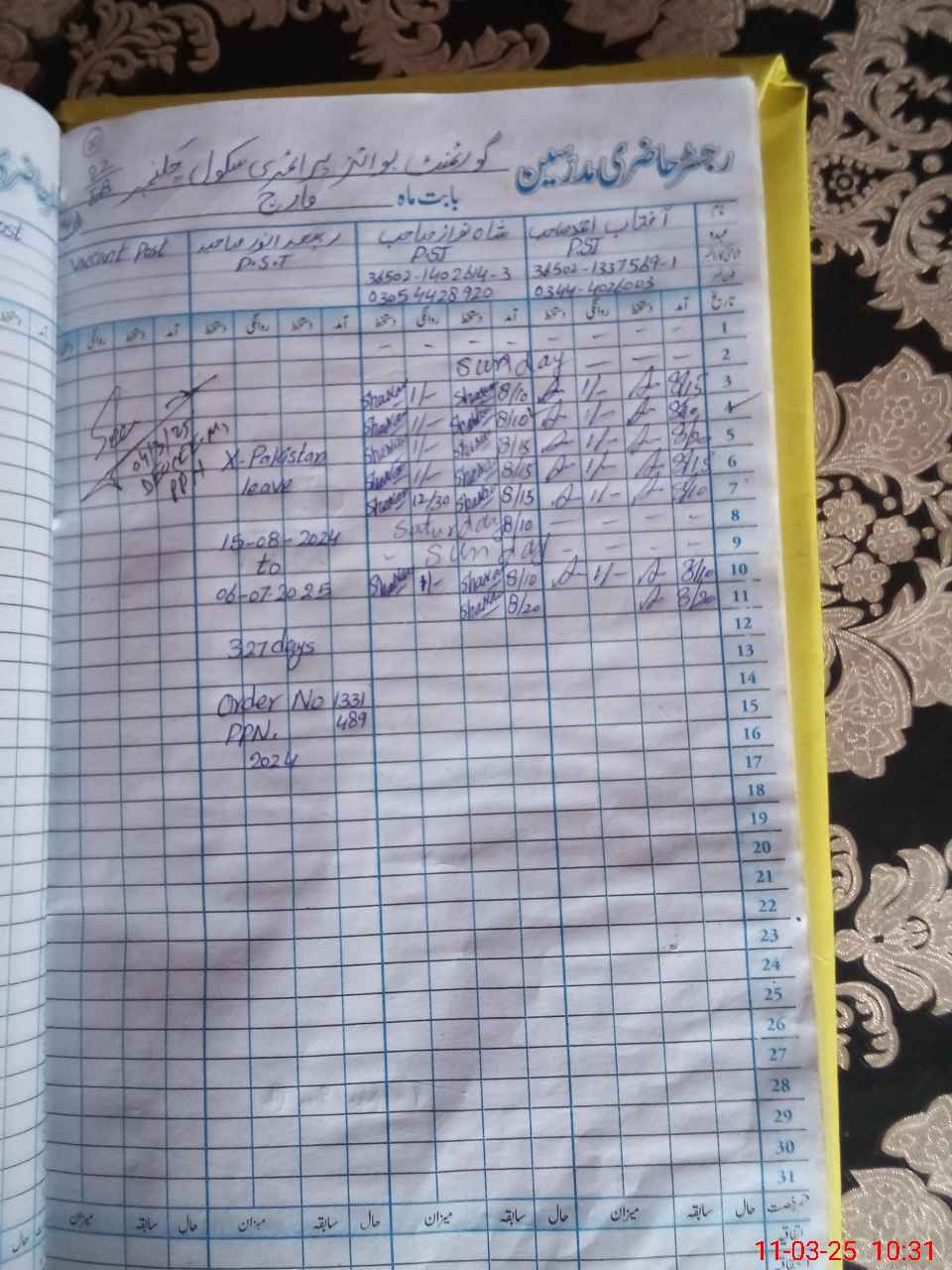 | Name: AF**** AH**** Designation: (School Headmaster's/Headmistress's) PST Phone/Cell Number: 03**** |